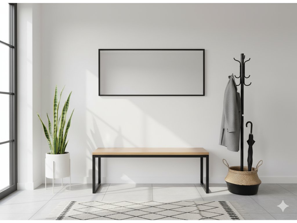 Lavička Rex je praktickým a stylovým kouskem nábytku do předsíně, kuchyně nebo pokoje. Vrchní deska je vyrobena z masivu dub s olejem Osmo (na přání jiná povrchová úprava) a kovová nosná konstrukce v bílé/černé barvě.