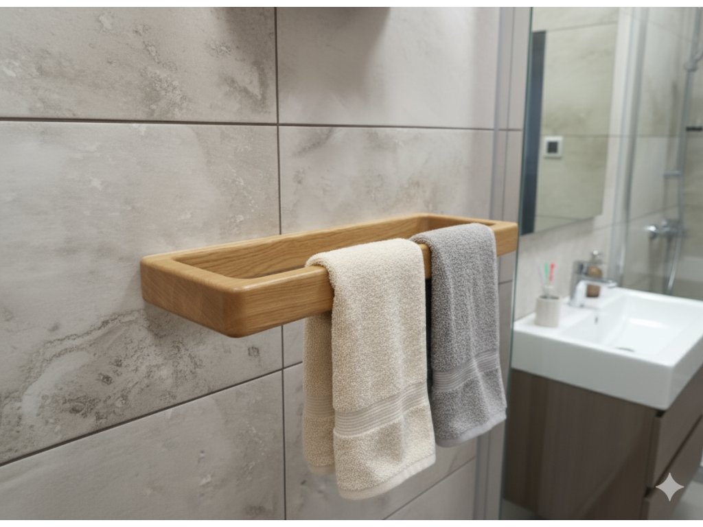 Hledáte elegantní a praktický způsob, jak zavěsit ručníky ve vaší koupelně? Věšák na ručník Delax z masivního dubového dřeva je ideální volbou. Vlastní návrh a výroba na cnc stroji. Z jednoho kusu dřeva.